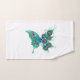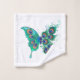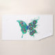 Mariposa pintada de forma artística, ficticia, verde, detallada, con plumas verdes, hermosas, de pavo real sobre fondo blanco.