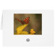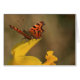 Una mariposa de bonito que descansa en un daffodil en un día soleado de primavera. Añade tu mensaje para ese regalo personal.