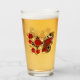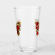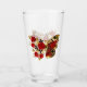 Mariposa de flores de los ojos de pavo real rojo con ala texturada roja, decorada con rosas rojos, pintados artistalmente con tallo dorado y hojas sobre fondo blanco.