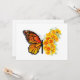 Naranja, mariposa monarca detallada con ala decorada con amapola californiana amarilla y vibrante sobre fondo blanco.