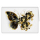 Mariposa de flores de oro con orquídea de joyería negra, decorada con hojas de oro sobre fondo blanco.