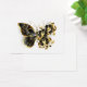 Mariposa de flores de oro con orquídea de joyería negra, decorada con hojas de oro sobre fondo blanco.