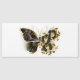 Mariposa de flores de oro con orquídea de joyería negra, decorada con hojas de oro sobre fondo blanco.