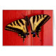 Una foto de una hermosa mariposa de cola de toro que descansa en un lugar muy inusual, el marco rojo brillante de la puerta del New Peking - un restaurante chino en bellingham, wa, ee. uu.