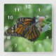 Mariposa de monarca bonita y reloj de pared rosado