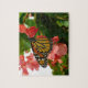 Belleza de mariposa presentada en flores rojas brillantes para desafiar el rompecabezas. ¡Cuantas más piezas, más diversión!