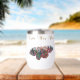 Tumbler de vino de acero inoxidable. Arte digital original. Colorida mariposa levantándose.