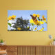 Hermosa mariposa monarca sobre un girasol con un fondo de abeto y cielo