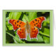 Se fotografió una mariposa comma vívida naranja mientras descansaba en follaje verde claro.