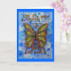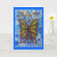 Pintura de una mariposa de color arcoiris con un contorno dorado. La mariposa está en un fondo de círculos azules superpuestos que es un tributo al símbolo del círculo azul para la diabetes. La pintura muestra el poema de diabetes de "Mi vida, mi elección". El interior de la tarjeta de saludo de apoyo a la diabetes contiene el texto del poema. Mi vida, mi elección de la diabetes puede cambiar mi cuerpo, pero elijo mi vida... elijo abrazar la paz. Elijo construir amistades. Elijo apreciar los recuerdos dulces. Elijo aceptar la gracia. Elijo tener coraje. Elijo creer en la esperanza. Elijo dar la bienvenida a la fe. Elijo conocer el amor. Elijo querer mi vida. Sienta belleza, mi vida Personaliza esta tarjeta de felicitación inspiradora para diabetes o tarjetas de notas con tus propias opciones.