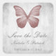Elegante y simple Boda Salven a los Pegatinas con una mariposa rosada sobre un fondo gris. Este diseño es una elección única para anunciar un boda moderno. Fácil de personalizar con los detalles de su boda. Haga clic en "Personalizar" para encontrar más opciones de personalización.