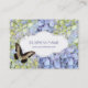 Mariposa elegante y tarjetas de visita azules de las flores del Hydrangea.