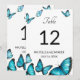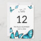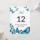 Tarjeta de número de mesa de boda con mariposas acuarela azules. Hermosa opción de moda para bodas de verano. Parte de una colección de bodas.