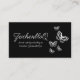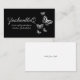 un diseño decorativo en blanco y negro de varias mariposas volando en una tarjeta de visita.