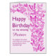 Una ráfaga de mariposas rosas llena esta tarjeta de cumpleaños para una pareja con alegría. Una multitud de mariposas se disparan para decirle a tu pareja lo maravillosa que es. Seguro que le encantará el sentimiento en este mensaje sincero.