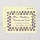 Los diamantes morados y amarillos forman un borde alrededor de las mariposas moradas y amarillas, en postales de invitación a la boda. El texto está escrito en morado sobre un fondo amarillo pálido. El texto es fácil de personalizar en los formularios de plantilla. Hay elementos coincidentes en esta tienda. Gracias por comprar en CherylsArt en Zazzle.