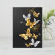 Oro, joyas y mariposas blancas sobre fondo negro. Mariposa dorada.