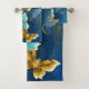 Composición de vuelo, joyería, oro y mariposas oscuras sobre fondo de joyería texturada. Mariposa dorada.