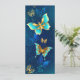 Oro volador, mariposa de joyas sobre fondo textural azul. Diseño con mariposas.