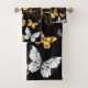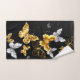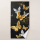 Oro, joyas y mariposas blancas sobre fondo negro. Mariposa dorada.