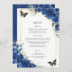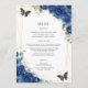 Diseñado para coordinarse con nuestra colección Royal Blue Floral, este elegante menú presenta una acuarela de flores azules reales y mariposas. Personalízalo con su propia redacción y detalles de forma fácil y rápida, simplemente pulse el botón personalizar it para reorganizar y formatear el estilo y la ubicación del texto. Doble cara. Ideal para quinceañera, dulce 16, ducha de bebé, ducha de novia, boda, fiesta de cumpleaños y más ocasiones! Artículos de coordinación disponibles en la tienda Happy Cat Studio Zazzle! c) El estudio Happy Cat Studio