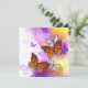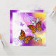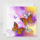 Naranja, mariposas monarcas detalladas sobre la luz, púrpura, pintoresco fondo pintado.