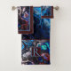 Patrón de mármol de color azul, negro y borgoña y conjunto de toallas de baño monograma. Los elementos de este diseño son un patrón abstracto en el estilo de mármol de tintes y en el monograma.