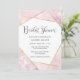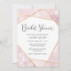 Hermosa invitación a la ducha Bridal con motivos geométricos de mármol en rosa y oro con fondo rosa. © Mini Impresiones Moi