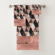 El elegante diseño clásico del cuarto de baño es de lujo y está decorado con mármol negro, dorado subió y rosa. La plantilla se ha configurado para que sólo tenga que agregar su nombre para completar el diseño.