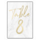 Añade un toque elegante a la recepción de tu boda con tarjetas de mesa personalizado. Las tarjetas de mesa bodas cuentan con un fondo de mármol blanco y una letra de guión de moda en oro falso. Se pueden encontrar números adicionales en la colección siguiente.