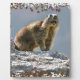 Marmota alpina (Marmota marmota - Mammal) en roca dando un grito de alarma, en los Alpes franceses, departamento de Saboya en La Plagne, en marco de hojas