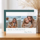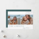 Envíe saludos de vacaciones a amigos y familiares en estilo moda con nuestras elegantes tarjetas de fotos. Diseñada para acomodar dos de sus fotos favoritas, arregladas una al lado de la otra, esta tarjeta minimalista de moda incluye el nombre de su familia en letras verdes y muy bonitas, con "Feliz Navidad" en un guión clásico ornamentado a lo largo del año. Una silueta pálida de copos de nieve en la esquina completa este diseño moderno y minimalista.