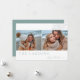 Envíe saludos de vacaciones a amigos y familiares en estilo moda con nuestras elegantes tarjetas de fotos. Diseñada para acomodar dos de tus fotos favoritas, arregladas una al lado de la otra, esta tarjeta minimalista de moda incluye tu nombre familiar con letras verdes majestuosas, con "Feliz Navidad" en un guión clásico ornamentado a lo largo del año. Una silueta pálida de copos de nieve en la esquina completa este diseño moderno y minimalista.