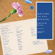 Estos modernos Marseille Bleu doblan sus propios programas de boda triplicados son perfectos para la novia económica. Diseñados en tres paneles, frontal y posterior, se envían llanos y necesitarán ser doblados por ti - ¡para eso están las damas de honor! Fácil de personalizar, estos programas de boda personalizados cuentan con un brillante panel azul marino tan pronto como se va a cubrir, mientras que el resto de los paneles incorporan texto azul oscuro en un sencillo y moderno tipo de letra sobre un suave fondo crudo. Llama a los padrinos también y tienes un fiesta plegable para tus programas de ceremonia de boda DIY triplicados.