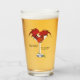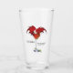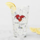 Un tierno dragón rojo se está sumergiendo en una aceituna verde en un vaso de martini