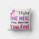 Soporte con un tacón alto y las palabras "más alto es el talón que mejor usted siente".