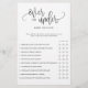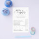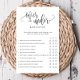 Diviértase en su ducha con este divertido juego de "sobre-abajo" Añada sus propias declaraciones y texto personalizado usando el formulario de plantilla o déjelas como está. Utilice la función "Personalizar adicional" para cambiar el color de fondo y el encabezado del guión de forma que coincida con el tema del fiesta. Utilice la opción de papel mate para escribir sobre.