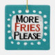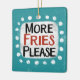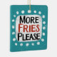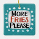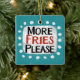 "More Fries Please" es un divertido diseño de texto con una forma de acento blanco rodeado de puntos de textura caprichosos y blancos.