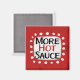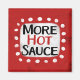 "Más Salsa Caliente" es un lindo diseño de texto en rojo con texto en negro y rojo, junto con una forma de acento blanco y puntos caprichosos de textura blanca que lo rodean.