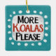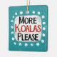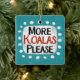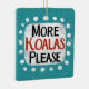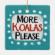 "Más Koalas Por favor" es un lindo diseño de texto en azul con texto en negro y rojo, junto con una forma de acento blanco y puntos caprichosos de textura blanca que lo rodean.