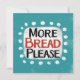 "Más pan por favor" es un divertido diseño de texto con una forma de acento blanco rodeado de puntos de textura caprichosos.