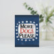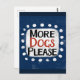 "Más perros, por favor" es un lindo diseño de texto en azul con texto en negro y rojo, junto con una forma de acento blanco y puntos caprichosos de textura blanca que lo rodean.
