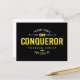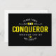 "Más que un conquistador" placa de diseño de tipografía cristiana. Escriba un estilo emblemático con letras negras y diga: "Soy más que un conquistador a través de Cristo que me amó". La referencia a las escrituras es de los romanos 8:37. (el color de fondo puede cambiar).
