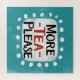 "Más té por favor" es un lindo diseño de texto en azul con texto en negro y rojo, junto con una forma de acento blanco y puntos caprichosos de textura blanca que lo rodean.