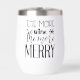 Este tumbler de vino festivo presenta la imagen de texto "Cuanto más vino más merry". Perfecto para las vacaciones.