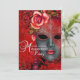 Invitación de cumpleaños de Sweet Sixteen Masquerade. Máscara floral roja elegante y joyas brillantes. Tenga en cuenta: ¡Todas las imágenes planas!