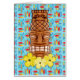 La máscara hawaiana de Tiki con las flores amarillas del hibisco en ella es la base, la flor de estado de Hawaii con un modelo del fondo de tablas hawaianas retras.