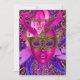 Fiesta de Máscaras. Invitación de Cumpleaños. Máscara de plumas rosa brillante y diseño de damasco dorado elegante.