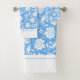 Elegante patrón vintage de damascos florales en azul cielo y blanco.