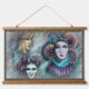 Imagina que estás paseando por las calles adoquinadas de Venecia, Italia, cuando te encuentras con una tienda de máscaras de carnaval. Uno se asoma al vidrio, tratando de incorporar todos los tejidos, cuentas, plumas y más hermosos. Respira hondo y entra. Colores de verde azul verde azulado, dorado, bronceado, burdeos y morado se muestran en las Máscaras de Venecia Colgando la impresión de arte.